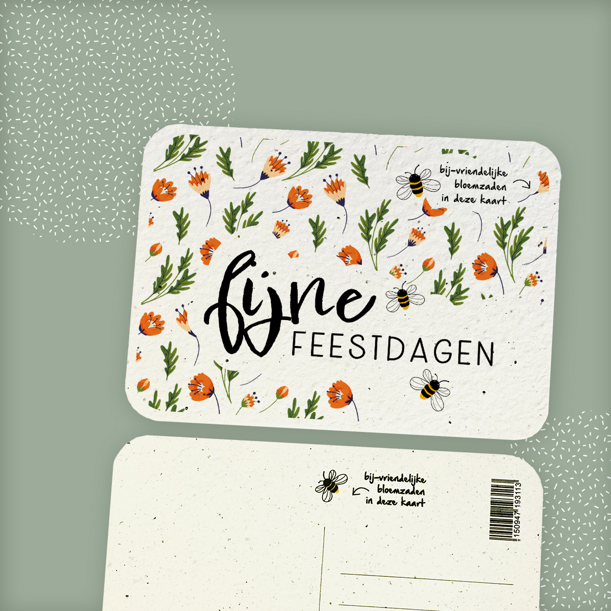 Postcards out of recycled paper with bee-friendly flowerseeds inside.